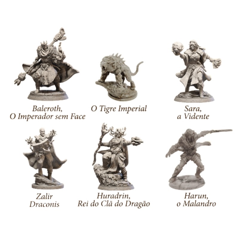 Pack Místico (6 miniaturas "médio", 2 HeroPad 170x125mm em inglês, 11 cartas 63x88mm em inglês).
